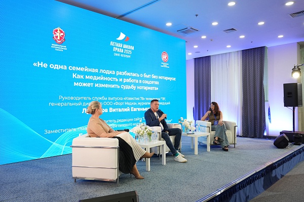 Завершила семинар панельная дискуссия, посвященная медийности и работе нотариата в соцсетях. Ее участниками стали профессиональные журналисты, редакторы изданий Виталий Лукашов и Анна Безрукова. Модератором встречи выступила член Правления Федеральной Нотариальной палаты Мария Терехова, много внимания уделяющая взаимодействию нотариусов и СМИ и формированию имиджа нотариуса в современном обществе.