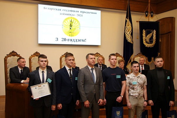 Поздравить и наградить медалями и ценными призами лучших из лучших студентов в зале ректората БГУ собрались представители Следственного комитета, Генеральной прокуратуры, Национального центра правовой информации, Белорусской республиканской коллегии адвокатов и другие. Победители олимпиады также внесены в специальный фонд Президента Республики Беларусь по социальной поддержке одаренных учащихся и студентов. Всего участниками олимпиады в этом году стали 40 студентов 2–4 курсов в личном первенстве и 12 команд. Это обучающиеся БГУ, Академии управления при Президенте Республики Беларусь, ГрГУ им. Янки Купалы, ГГУ им. Ф. Скорины, Академии Министерства внутренних дел Беларуси, Могилевского института Министерства внутренних дел Беларуси, Белорусской государственной сельскохозяйственной академии и др.