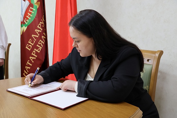 В этот день Ольга Савина успешно сдала квалификационный экзамен в Министерстве юстиции Республики Беларусь, получив право заниматься нотариальной деятельностью. В рамках заседания правления в торжественной обстановке нотариус принесла присягу, став полноправным членом белорусского нотариального сообщества. Профессиональную деятельность она будет осуществлять в Могилевском нотариальном округе.