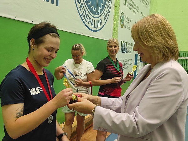 Открывала Открытый любительский турнир по бадминтону, а после награждала победителей — Наталья Борисенко, председатель БНП и руководитель Минского городского отделения БРСЮ.