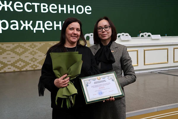 Завершилось собрание на торжественной ноте – вручением наград Министерства юстиции Республики Беларусь. С почетной миссией выступила заместитель Министра юстиции Ирина Степуро, которая вручила нотариусу Брестского нотариального округа Ирине Сачковской нагрудный знак Министерства юстиции Республики Беларусь «За адзнаку» 2 степени, а нотариусам Марине Дайлиденок, Инне Ефимчик, Наталье Кражевой, Наталье Матусевич и Юлии Чертковой – Благодарность Министерства юстиции Республики Беларусь.