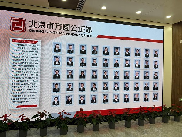 Рабочий визит продолжился посещением нотариальной конторы района Фаншань в Пекине. Он расположен на юго-западе столицы Китая, а его постоянное население составляет 1,313 млн человек. Нотариальная контора работает в составе 82 нотариусов и более сотни работников. Нотариальная контора обладает правами юридического лица и является нанимателем. Помогают в осуществлении нотариальной деятельности нотариусам аттестованные помощники, профессиональную квалификацию которых проверяет Пекинская Ассоциация нотариусов. Она же и дает им допуск к работе.