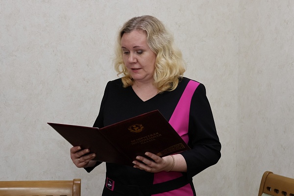 Члены правления и председатель БНП Наталья Борисенко тепло приветствовали молодых коллег и пожелали профессиональных успехов. По сложившейся традиции новым нотариусам вручили экземпляры научно-практического комментария к Конституции Республики Беларусь, книгу «Нотариат: от истоков до современности», посвященную истории развития нотариата на белорусских землях, а также фрачный значок нотариата.
