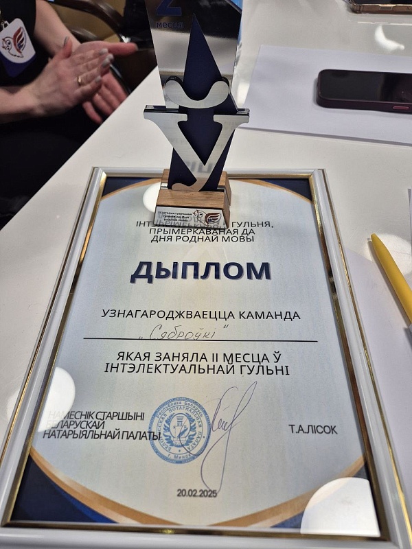 Команда «Сяброўкі» Брестского нотариального округа заняла почетное второе место, показав глубокие знания и умение работать в команде.