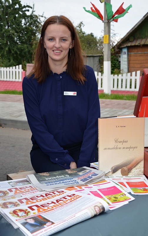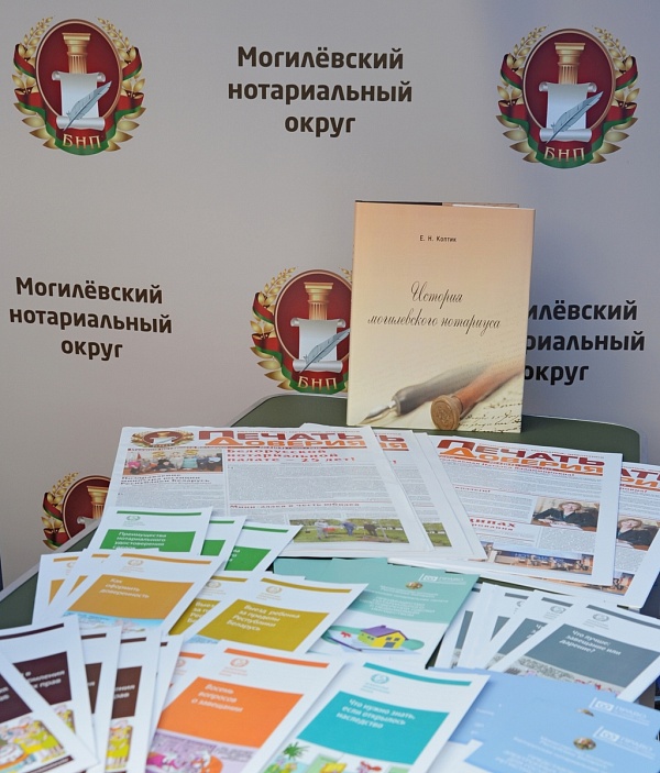 Делегация Могилевской областной нотариальной палаты посетила праздник и представила экспозицию, на которой предложила вниманию посетителей все выпуски газеты «Печать доверия», книгу заведующего архивом первой Могилевской нотариальной конторы Елены Коптик «История Могилевского нотариуса», увидевшую свет в 2020 году и известные буклеты Белорусской нотариальной палаты по разъяснению нотариальных действий.