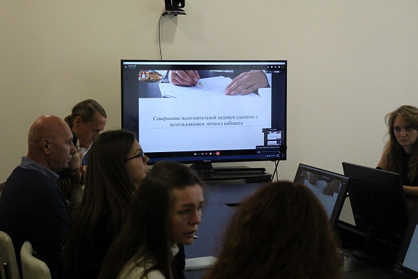 Кроме того, Светлана Николаевна продемонстрировала алгоритм подачи документов нотариусу в удалённом режиме, подчеркнув, что такая форма работы не только упрощает процесс, но и значительно ускоряет взаимодействие между взыскателями и нотариусами.