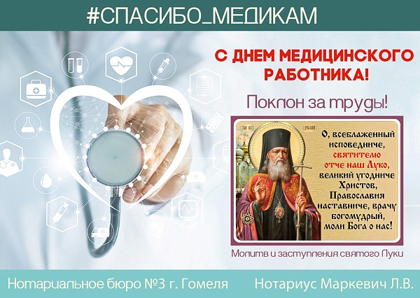 Нотариусы и работники Гомельского нотариального округа от всей души поздравляют Вас с профессиональным праздником – Днем медицинского работника!