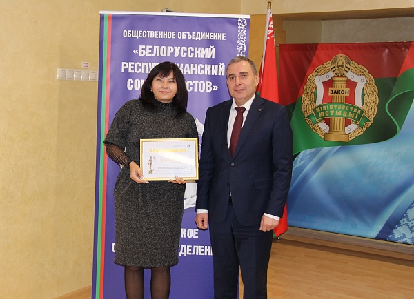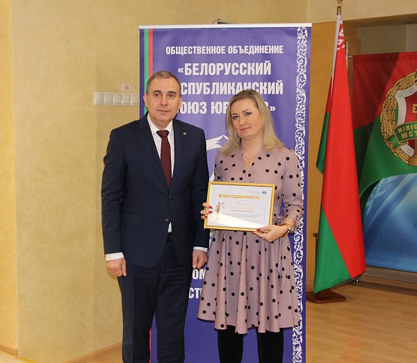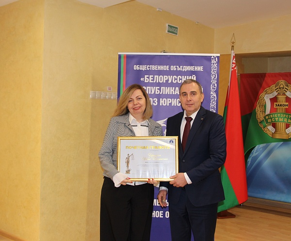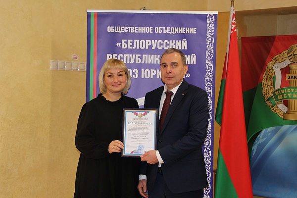 В свою очередь Гомельская областная нотариальная палата от имени Белорусской нотариальной палаты выразила благодарность главному специалисту отдела по координации правовой, контрольной и архивной работы Юлии Евстаховой.