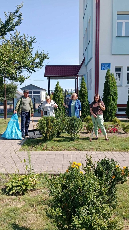 Коллектив нотариальной конторы № 1 Железнодорожного района города Гомеля провели уборку территории сквера Строителей.