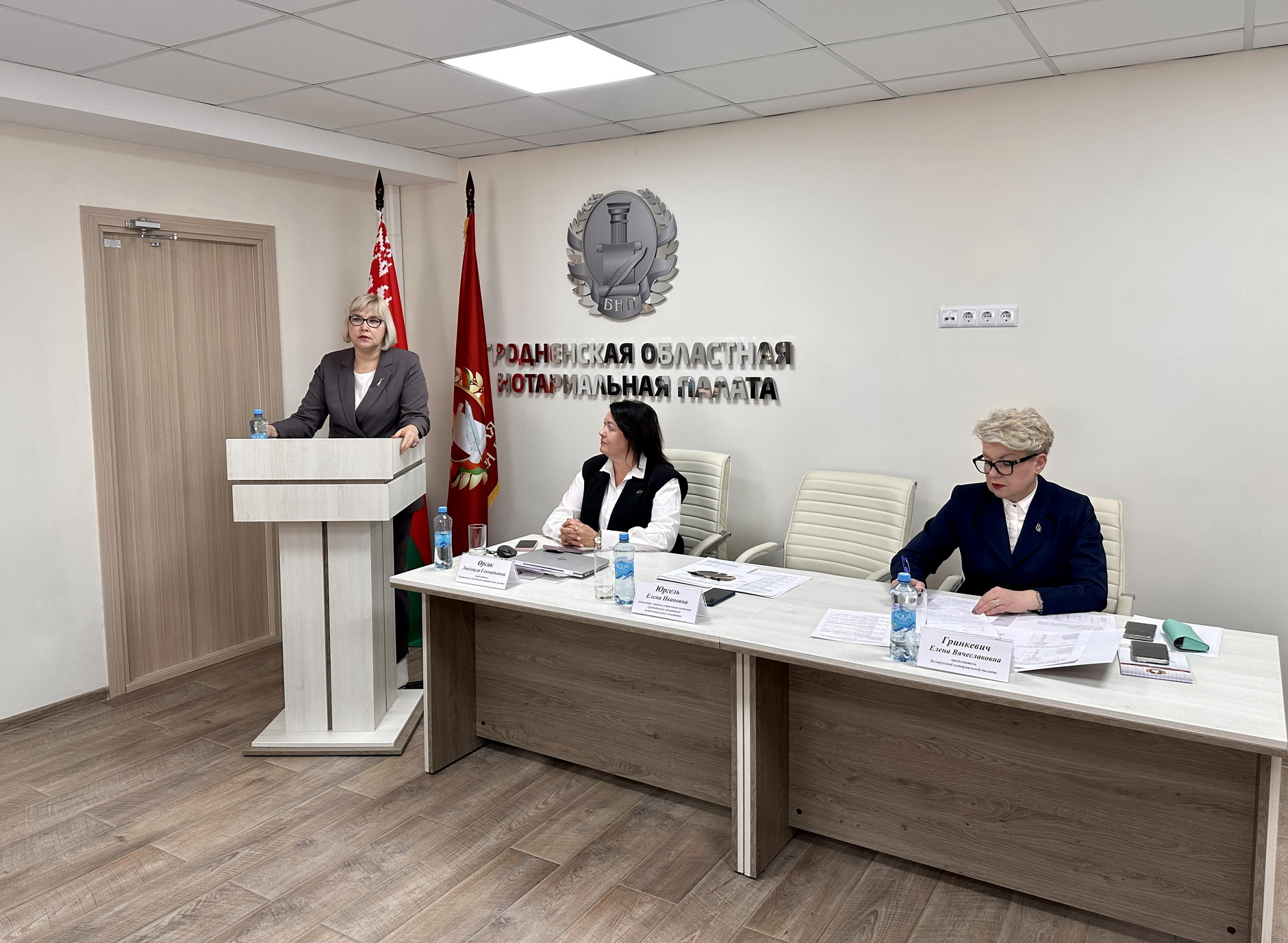 Также на совещании выступили председатель Дисциплинарной комиссии Гродненской областной нотариальной палаты Лариса Мискевич с докладом о работе Дисциплинарной комиссии ТНП Гродненской области, специалист по правовой работе ТНП Гродненской области Вадим Поконечный, озвучивший итоги работы округа по правовому просвещению населения, и заведующий нотариальным архивом Гродненского нотариального округа Наталия Михальченко, которая подвела итоги работы нотариального архива Гродненского нотариального округа за отчетный период.