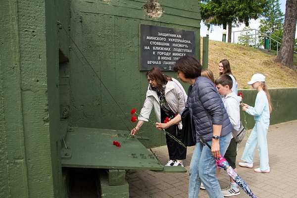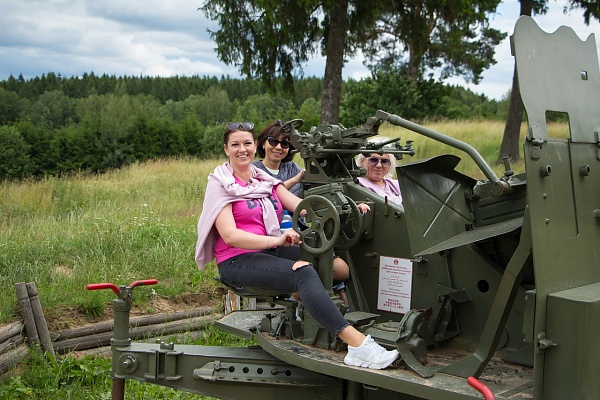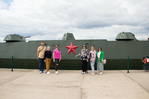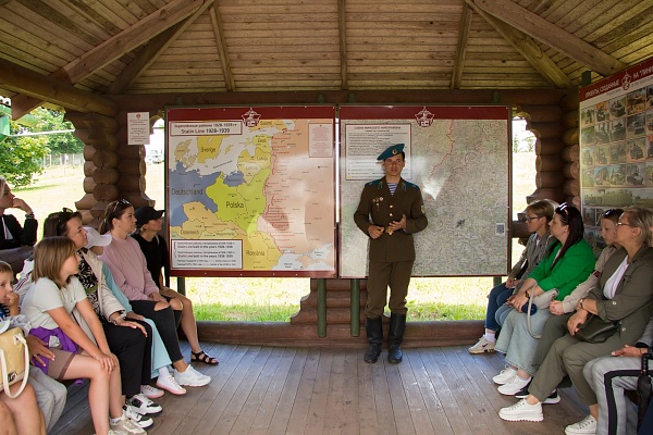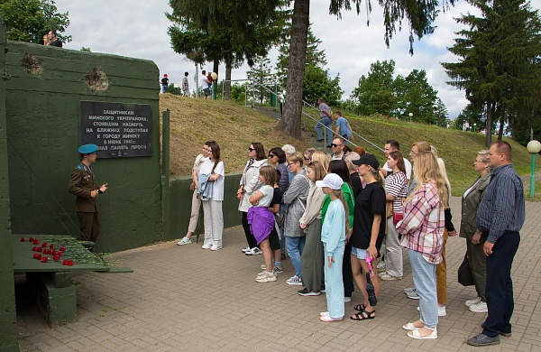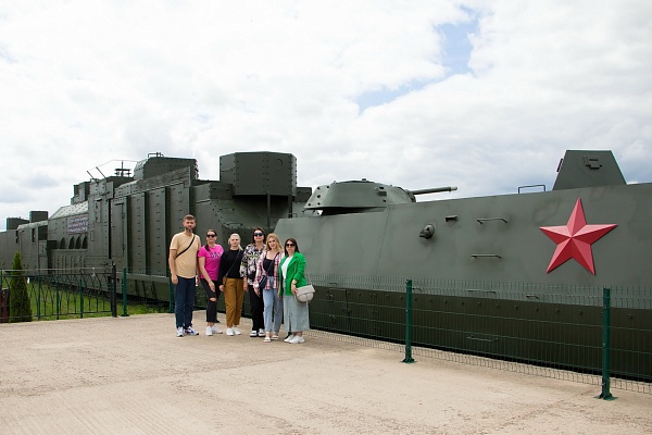 Далее все проследовали на экскурсию, в ходе которой узнали истории строительства «Линии Сталина» – системы укрепленных районов (УРов) вдоль старой западной границы СССР от Карельского перешейка до берегов Черного моря и создания историко-культурного комплекса на месте Минского УРа, побывали внутри артиллерийского полукапонира и трехамбразурного пулеметного ДОТа, прошлись вдоль стрелковых пулеметных ячеек, ознакомились с большой экспозицией военной техники, артиллерии, танков, авиации, стрелкового оружия и посетили бронепоезд времен ВОВ.