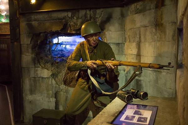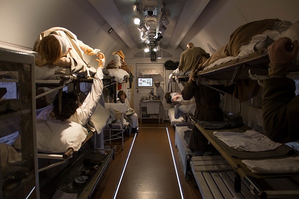 «Поезд Победы» – это интерактивная экспозиция, основанная на «эффекте присутствия», которая посвящена подвигу советского народа в годы Великой Отечественной войны, созданная на базе вагонов передвижного выставочно-лекционного комплекса. Она уникальна своим мультимедийным сопровождением: здесь используется объемный звук, театральное освещение, механические спецэффекты, датчики присутствия, голограммы, панорамы боев в виртуальной реальности, трехмерная компьютерная графика и специально написанная музыка для каждой зоны экспозиции. Каждая зона – это отдельная часть истории о Великой отечественной войне.