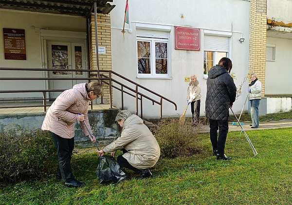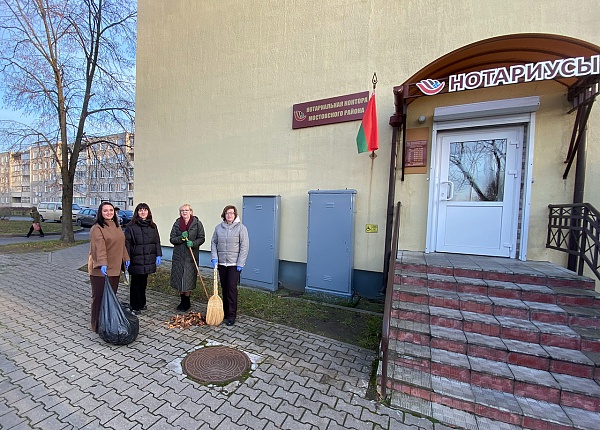 В ноябре текущего года нотариусы округа, сотрудники аппарата ТНП Гродненской области, нотариальных контор и нотариального архива вновь провели уборку твердых бытовых отходов и мероприятия по благоустройству на закрепленных участках – территориях, прилегающих к зданиям по месту расположения нотариальных контор, в городских парках, скверах, у водоемов и городских рек, на улицах и у памятных мест.