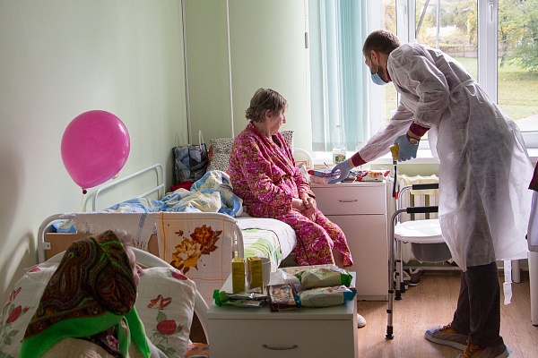 Сегодня, в преддверии Дня пожилых людей, представители Гродненской областной нотариальной палаты посетили койки сестринского ухода гродненского учреждения «Центр помощи жизни», расположенные в Сопоцкинской горпоселковой больнице. Здесь находятся пациенты, нуждающиеся в медико-социальной помощи. Это люди с хроническими заболеваниями, в стадии компенсации субкомпенсации с благоприятным ближайшим прогнозом для жизни, имеющие необходимость продолжения лечебных мероприятий под круглосуточным наблюдением медицинских работников после завершения интенсивного лечения в больничной организации здравоохранения, нуждающиеся в организации сестринского ухода, проведении лечебных и диагностических мероприятий в условиях круглосуточного пребывания в больничной организации здравоохранения. На сегодняшний день сестринский уход насчитывает 15 коек, 13 из которых в основном заняты людьми пожилого возраста.