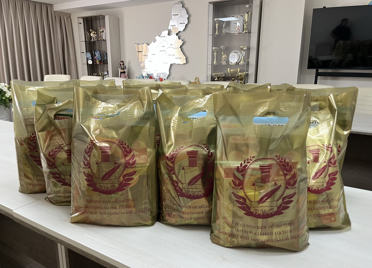 Усилиями коллективов аппарата ТНП Гродненской области и нотариальных контор г. Гродно в общей сложности было собрано более 500 белорусских рублей, за счет которых приобретено 14 наборов школьных принадлежностей для учеников младших классов средних школ г. Гродно.