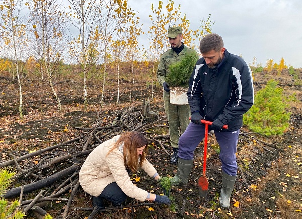 В течении нескольких часов общими усилиями группы было высажено около 1000 саженцев, благодаря чему в скором времени на некогда выгоревшем месте появится молодой сосновый лес.