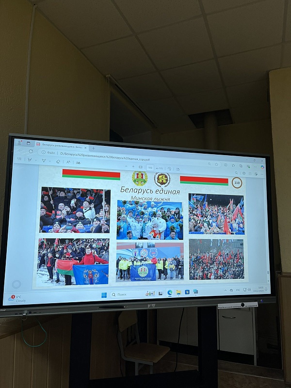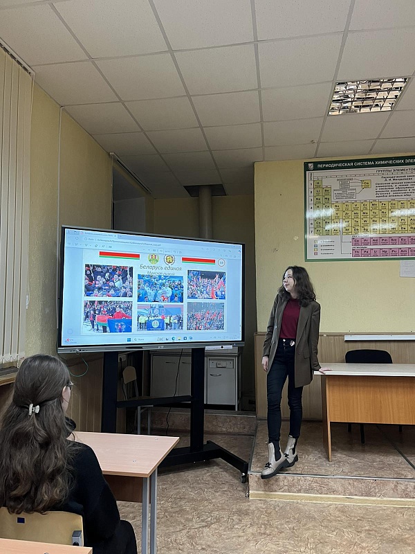 В завершение мероприятия была продемонстрирована презентация на тему «Беларусь единая. Беларусь развивающаяся», наглядно показавшая социальные и экономические достижения нашей страны, а также историко-культурные ценности, благодаря которым Республика Беларусь известна во всём мире.