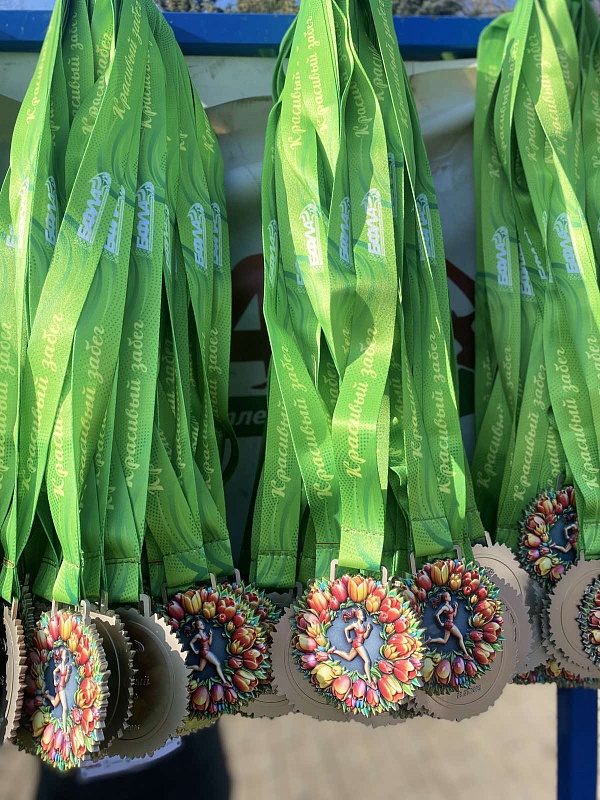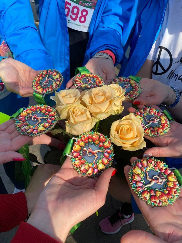 На финише каждую участницу «Красивого забега» ожидали фирменные медали и цветы.