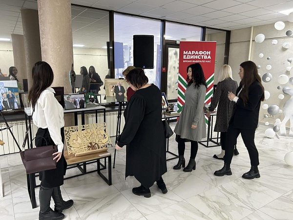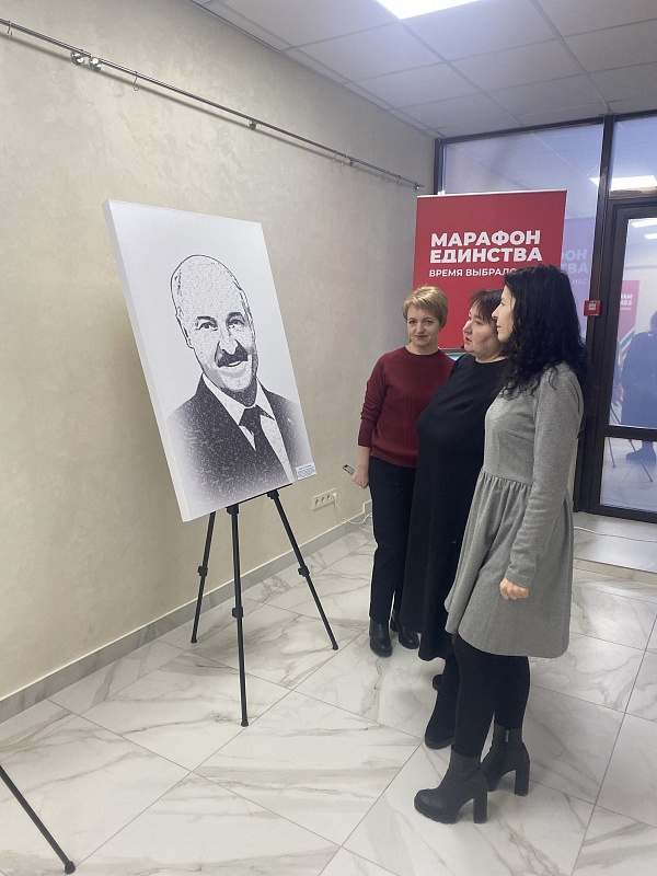 Коллектив нотариальной конторы Солигорского района принял участие в патриотической акции, посетив одну из самых интересных локаций – выставку подарков Президенту Республики Беларусь от трудовых коллективов, врученных в период с 2000 по 2024 гг., в числе которых были представлены: портрет Президента Республики Беларусь А.Г.Лукашенко, созданный из его слов, звучавших чаще всего, горная порода Антарктиды и Белорусский изумруд.
