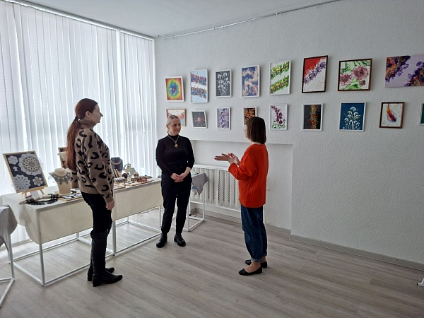 Особое внимание привлекли живописные работы Татьяны Соколовой, выполненные жидким акрилом на стекле, а также изящные ажурные изделия Оксаны Исаени в технике фриволите.
