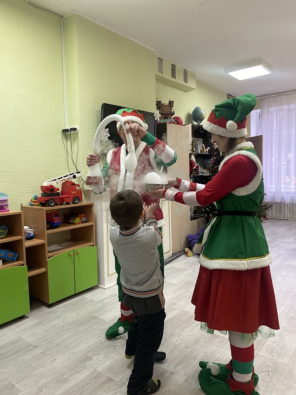 Чтобы подарить радость детям и ощущение волшебства гости привезли с собой новогодних эльфов, а также сладкие подарки.