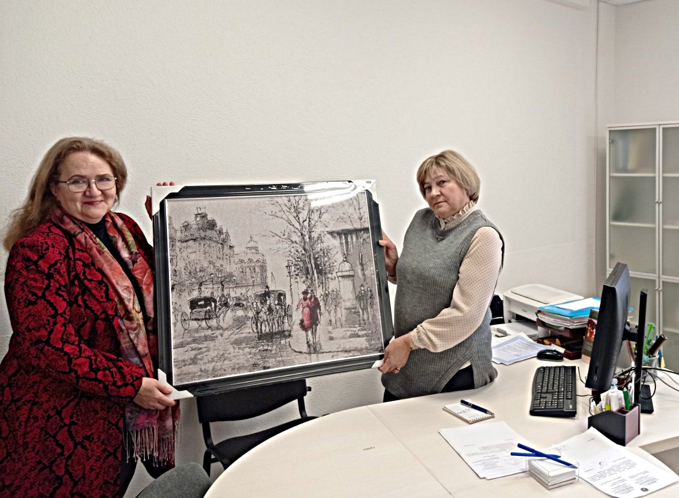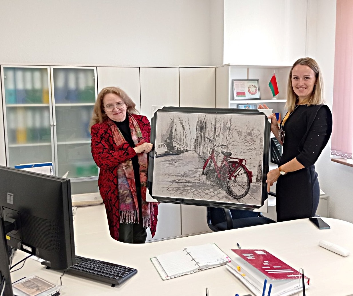 В качестве подарка к новоселью от Могилевской областной нотариальной палаты Белорусской нотариальной палаты нотариусам были переданы картины, которые станут стильным дополнением к обновленному интерьеру конторы.