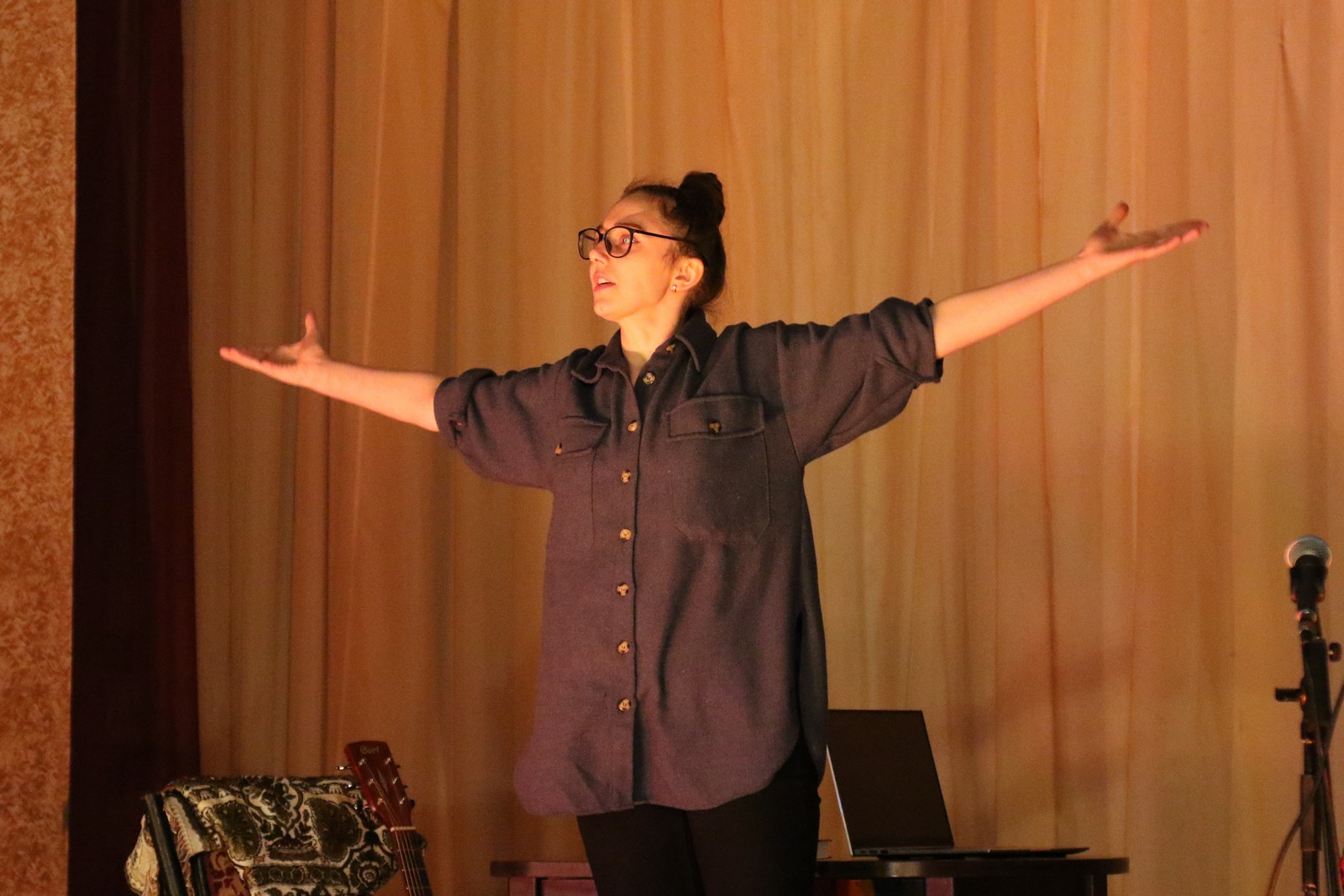 А вот каким может быть это детство рассуждала Мария Меженникова, архивариус нотариальной конторы Новобелицкого района Гомеля в монологе по мотивам произведения «Раннее развитие» Ольги Савельевой. В своем выступлении, наполненном самоиронией, актриса размышляла о том, как тяжело быть счастливым ребенком, особенно если твои родные активно занимаются всесторонним развитием твоей личности.
