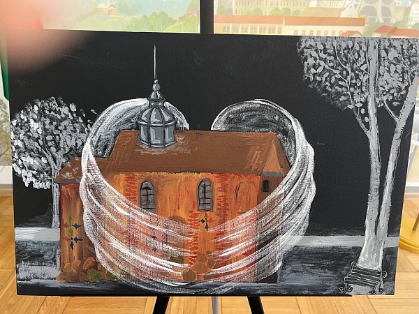 На картинах художников оживает Гродно: городские пейзажи, знакомые улицы, строительные объекты. Но есть в них одна общая, очень личная деталь: почти на каждой работе рядом с домами и храмами — ангел-хранитель, который словно оберегает каждый уголок родного города, даря зрителю тепло и заботу.