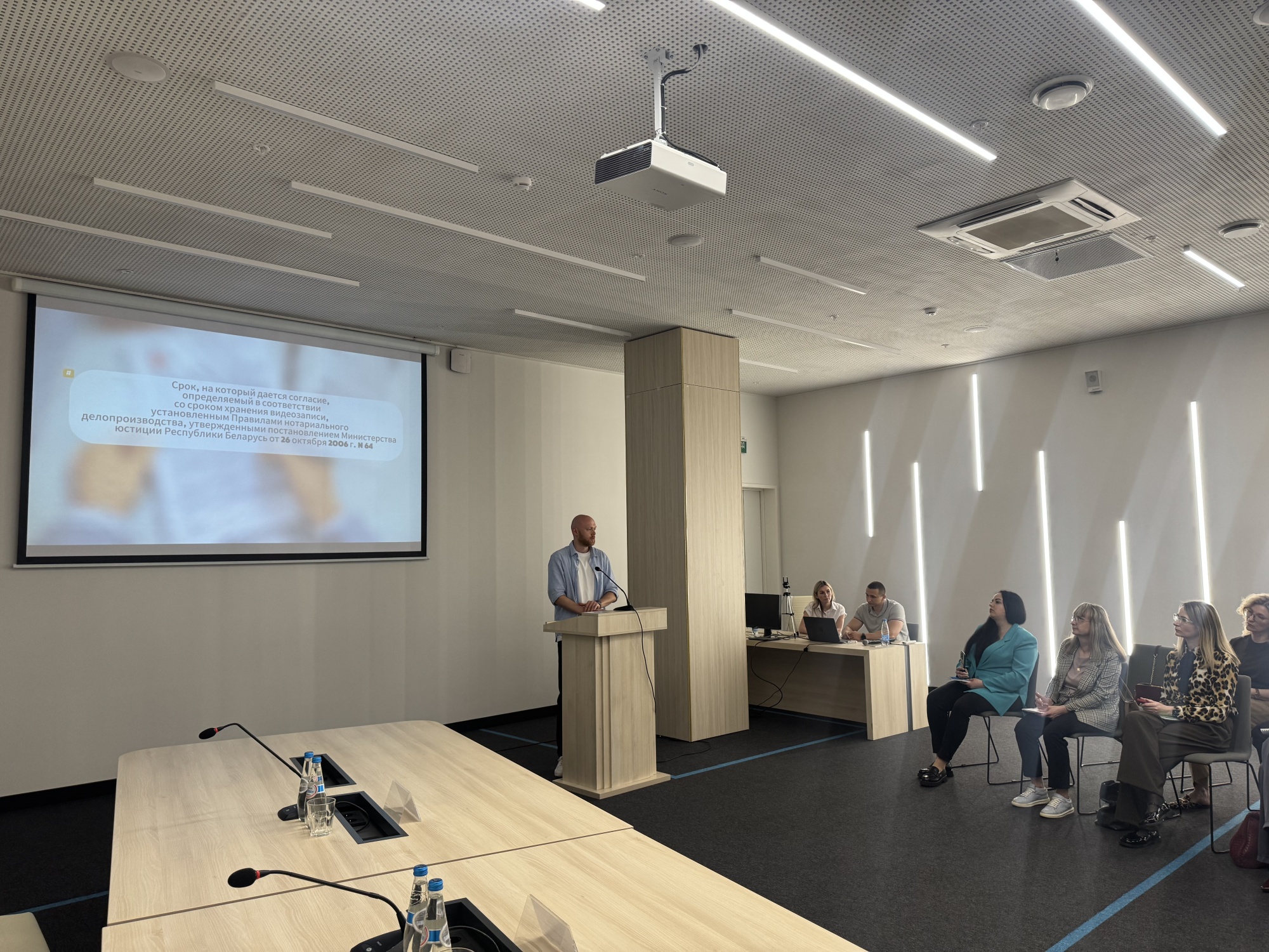 Продолжилось мероприятие проведением обучающего семинара для нотариусов. Его основной темой стало обсуждение порядка проведения, хранения и воспроизведения видеозаписи, проводимой при совершении нотариального действия.