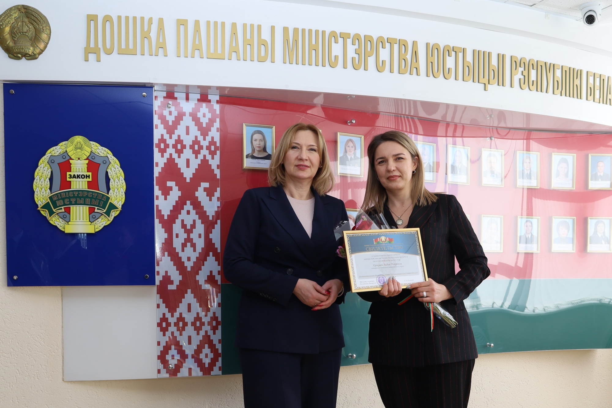 Торжественное открытие Доски почета состоялось в Министерстве юстиции Республики Беларусь. По итогам работы в 2022 году отмечены лучшие представители сферы юриспруденции. В их числе нотариус Гомельского нотариального округа Лидия Грекова.